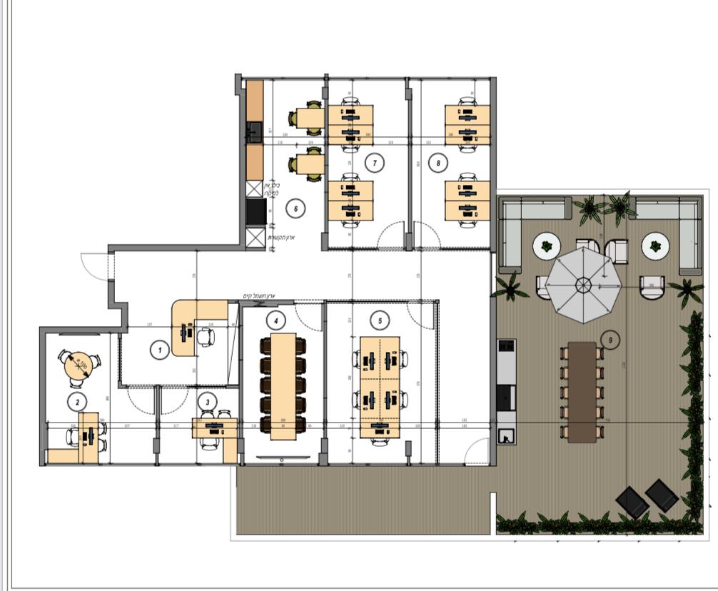 180 מ"ר שטח עבודה פנימי לצד מרפסת ענקית בשטח של 145 מ"ר.